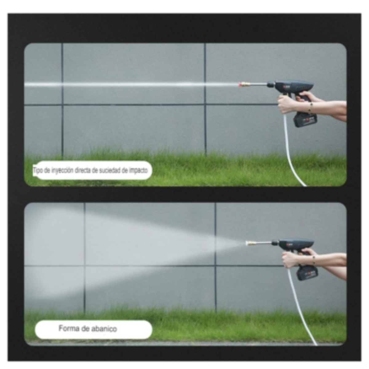 Potencia portátil:Equipada con un motor de alta potencia, nuestra Hidrolavadora portátil ofrece un rendimiento de limpieza excepcional, sin importar dónde te encuentres. Desde eliminar la suciedad incrustada en tu vehículo hasta limpiar las herramientas de jardín, esta máquina hace el trabajo de manera rápida y eficaz.